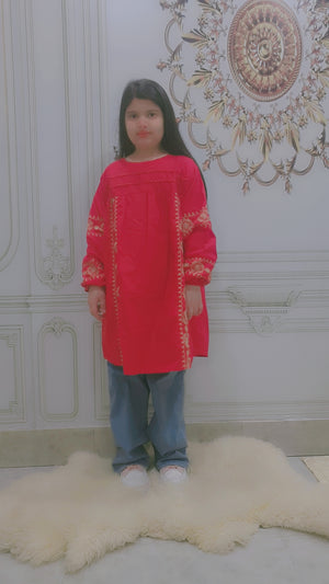 Elegant Embroidery: Beautifully designed embroidery enhances the charm of this traditional red kurta.
