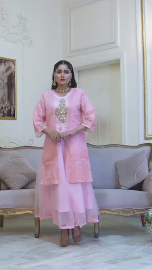 Elevate your festive and formal wardrobe with this beautifully crafted 3-piece pink organza embroidered suit for women. Designed with fine detailing and made from high-quality organza fabric, this elegant set is perfect for celebrations, evening events, and special occasions.